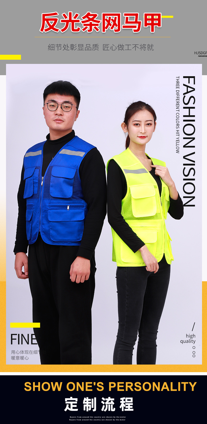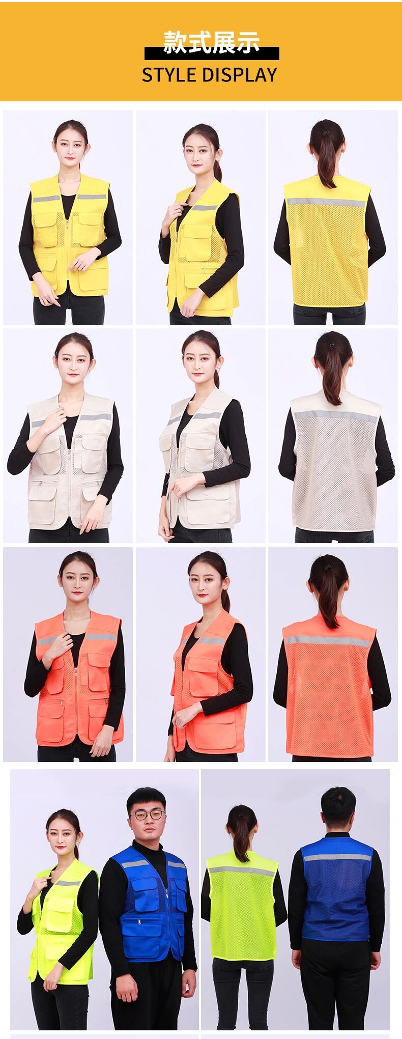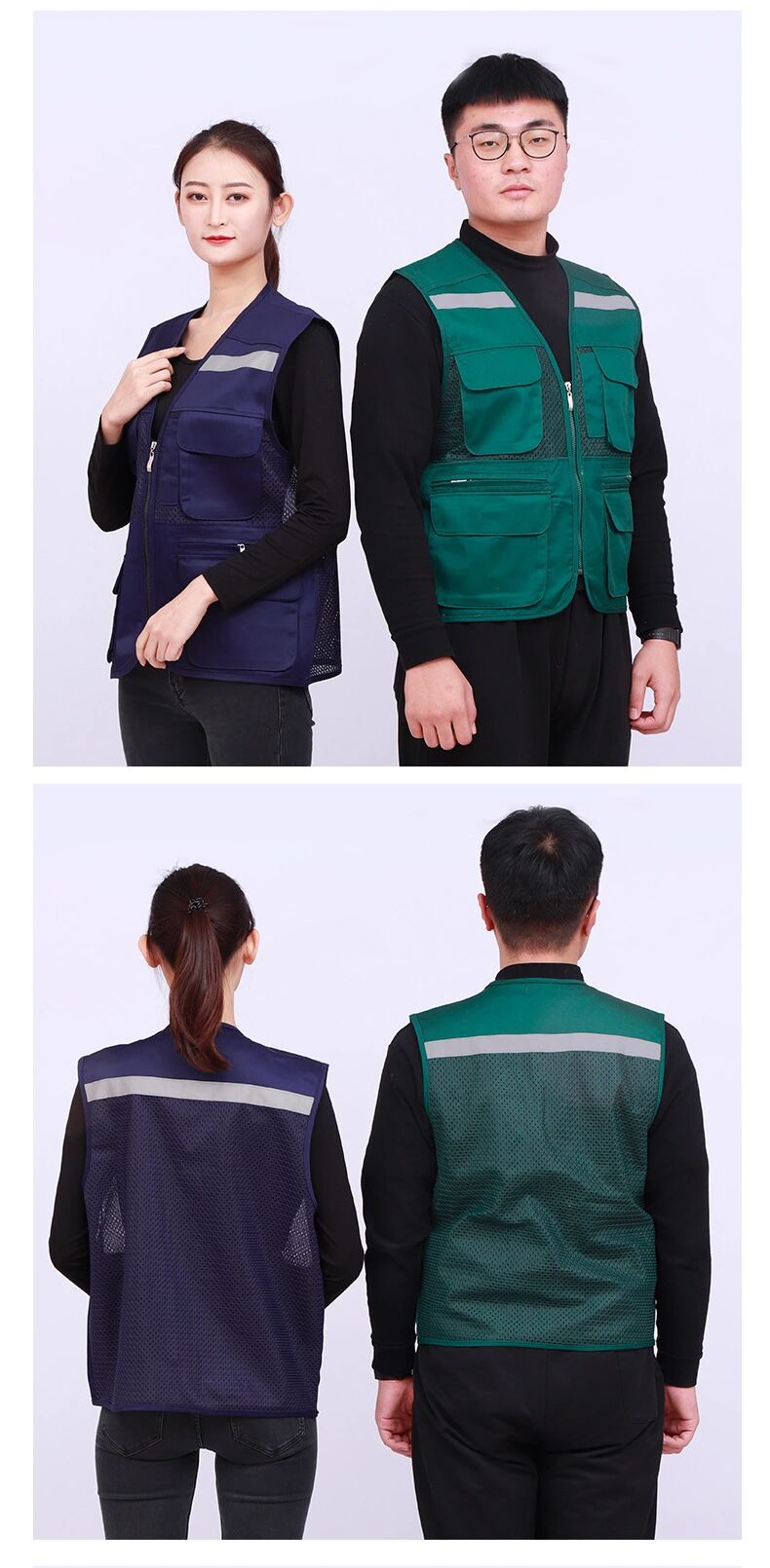 多口袋透气反光条马甲